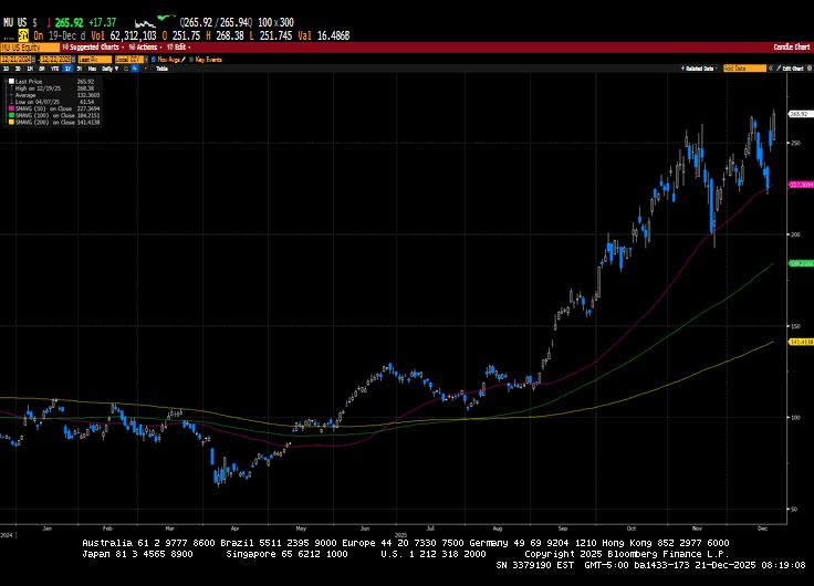 US markets finished the week mixed, with a late-week rally in technology mitigating early-week losses. Micron Technology’s third-quarter results were excellent and helped propel technology stocks after the announcement. Western Digital, Seagate, and Sandisk, other names in memory, traded higher in sympathy. The announcement that Oracle, Silver Lake, and MGX had finalized a deal to own 45% of TikTok sent Oracle’s shares materially higher after the company had been under pressure from debt concerns and delayed data center buildouts. As expected, the European Central Bank left its policy rate in place. At the same time, the Bank of England voted 5 to 4 to cut its policy rate by 25 basis points, and the Bank of Japan voted to raise its policy rate by 25 basis points to the highest level in 30 years. The Trump Administration was quite busy this week, meeting with several candidates for the Federal Reserve Chairmanship, and announcing changes to pharmaceutical pricing, the reclassification of cannabis, a year-end bonus for active military personnel, and granting federal workers Christmas Eve and the day after Christmas off.